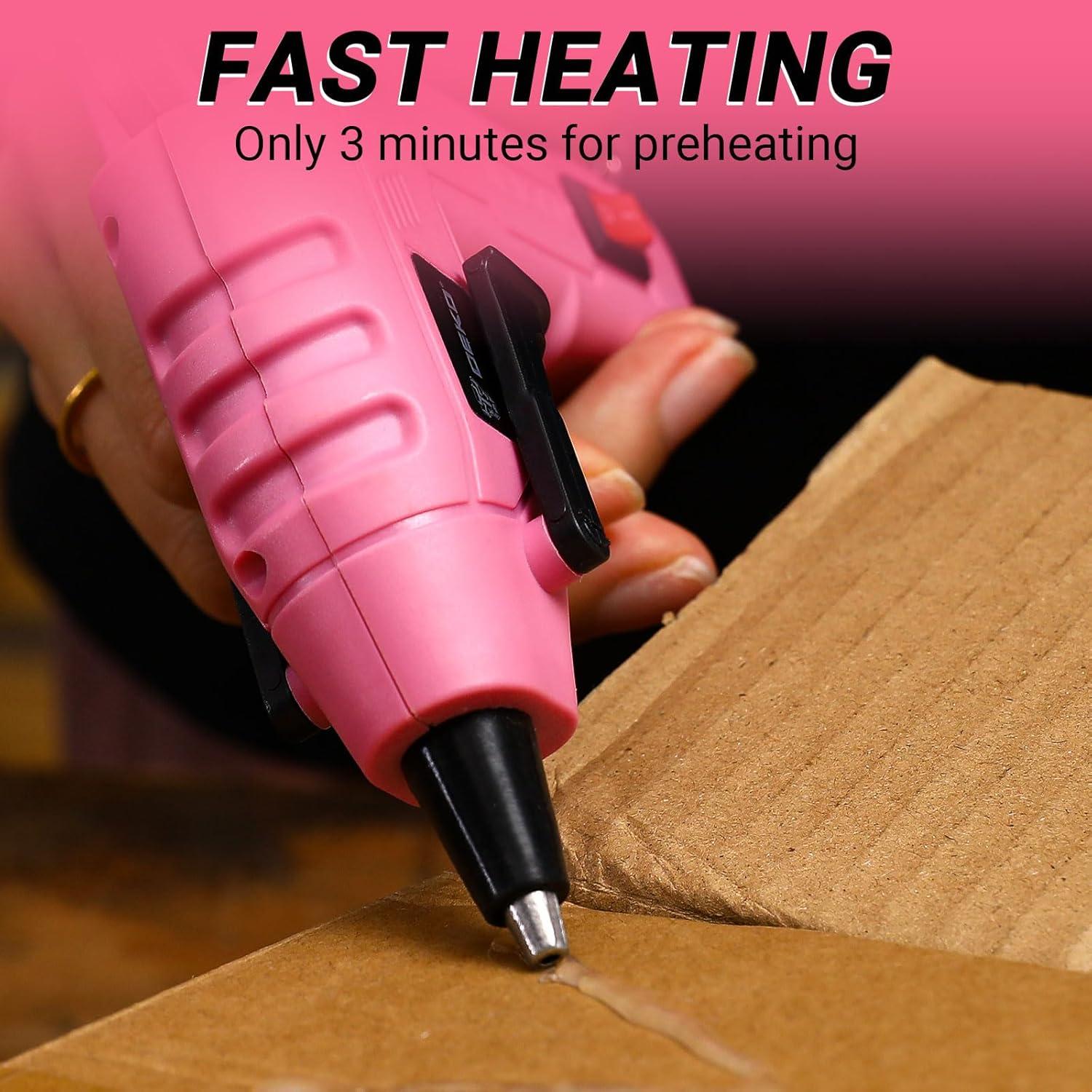 【Fast Heating】This 20W Glue Gun takes 3 to 5 minutes to heat up and fits for 7mm-diameter glue sticks, keeps the temperature constant automatically. Note: Never touch the nozzle during and after use, only hold the handle to avoid scalding.