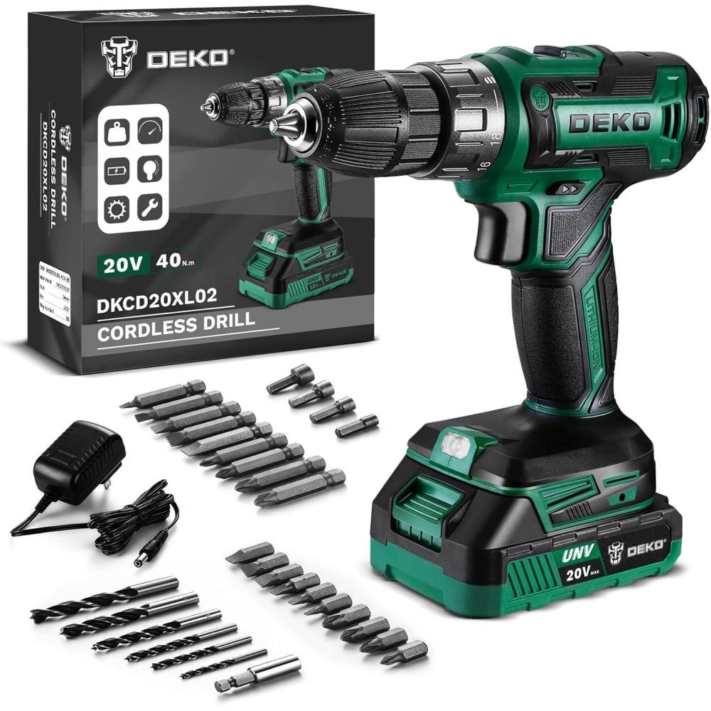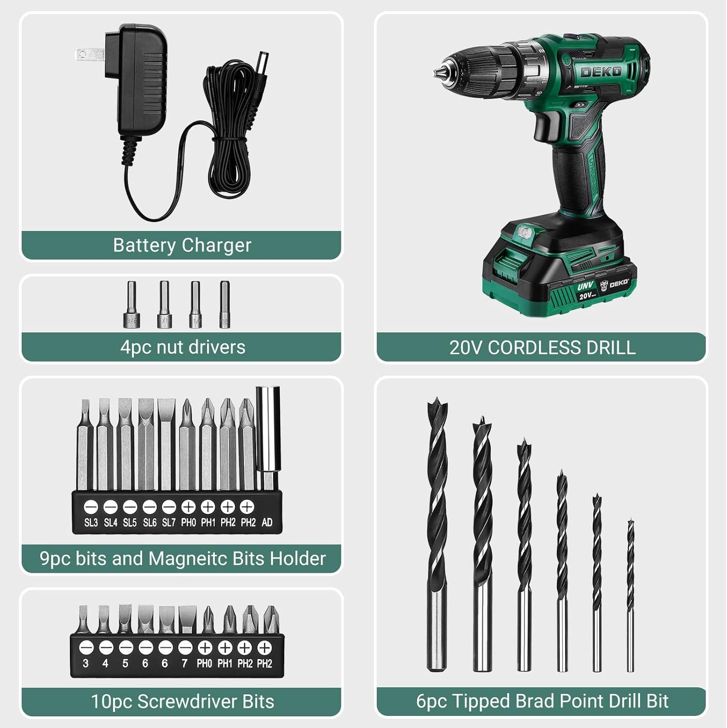 Power Drill Cordless: DEKO PRO Pink Cordless Drill 20V Electric Power Drill Set Tool for Women Drills with Battery and Charger 20 Volt Drills Driver Kit(Green)